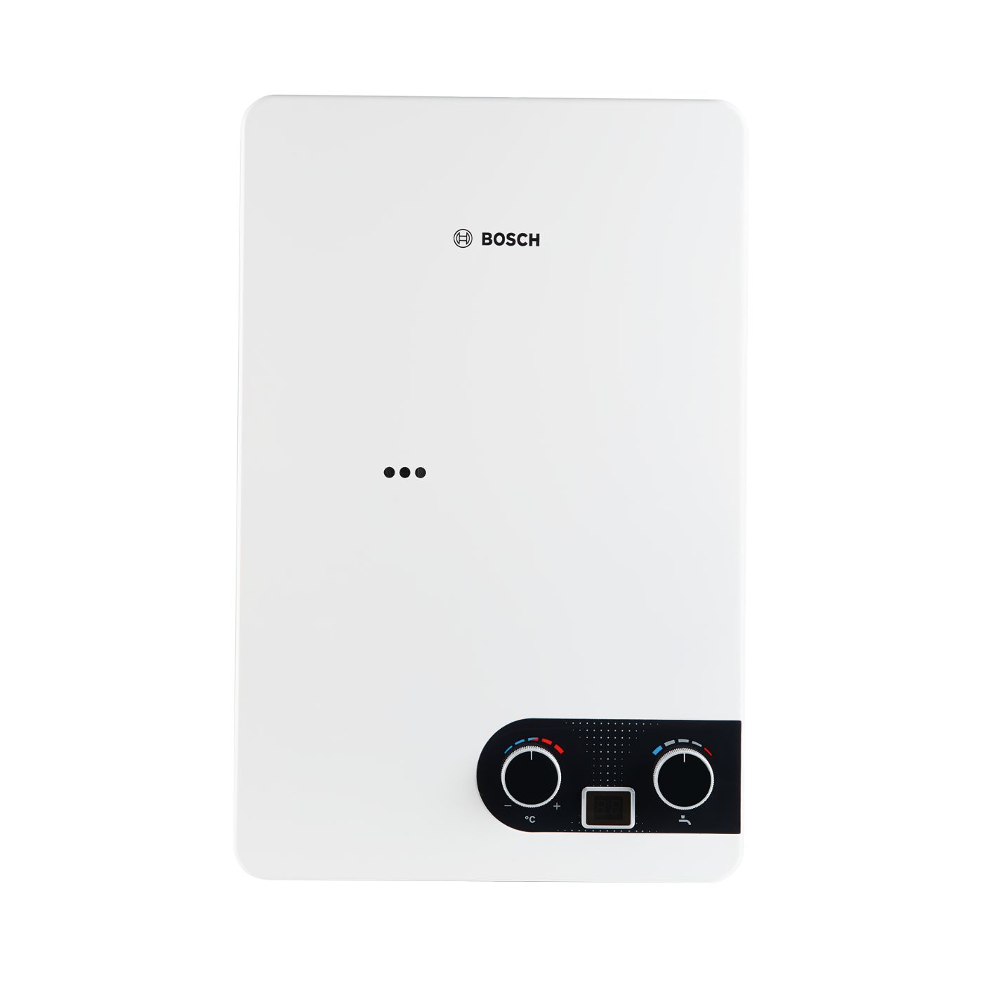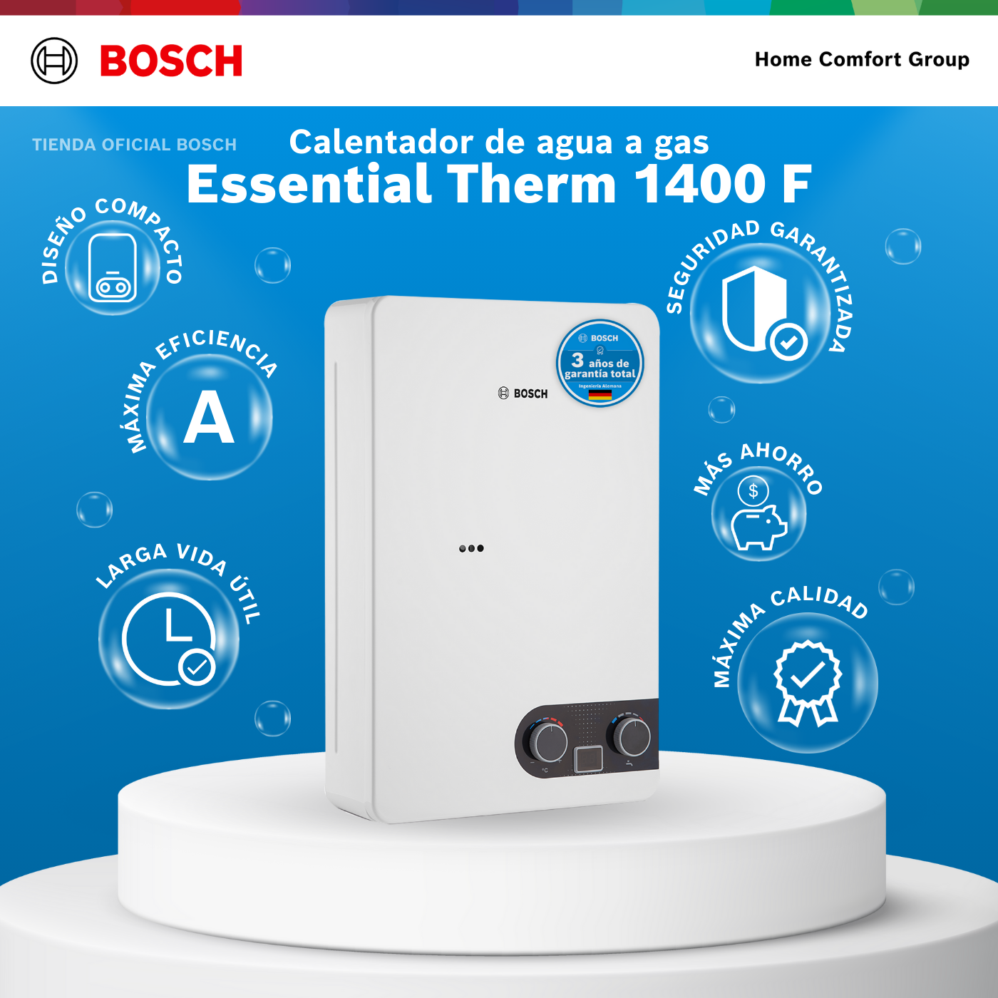 El exclusivo diseño Roundagon Bosch fusiona elegancia y seguridad con 8 sistemas de seguridad. Ajusta la temperatura con dos perillas y ahorra gas gracias a su eficiencia energética y selector de potencia. Garantiza durabilidad con un intercambiador 100% en cobre y un ventilador para expulsar gases eficazmente. Se enciende automáticamente al abrir el grifo de agua caliente.